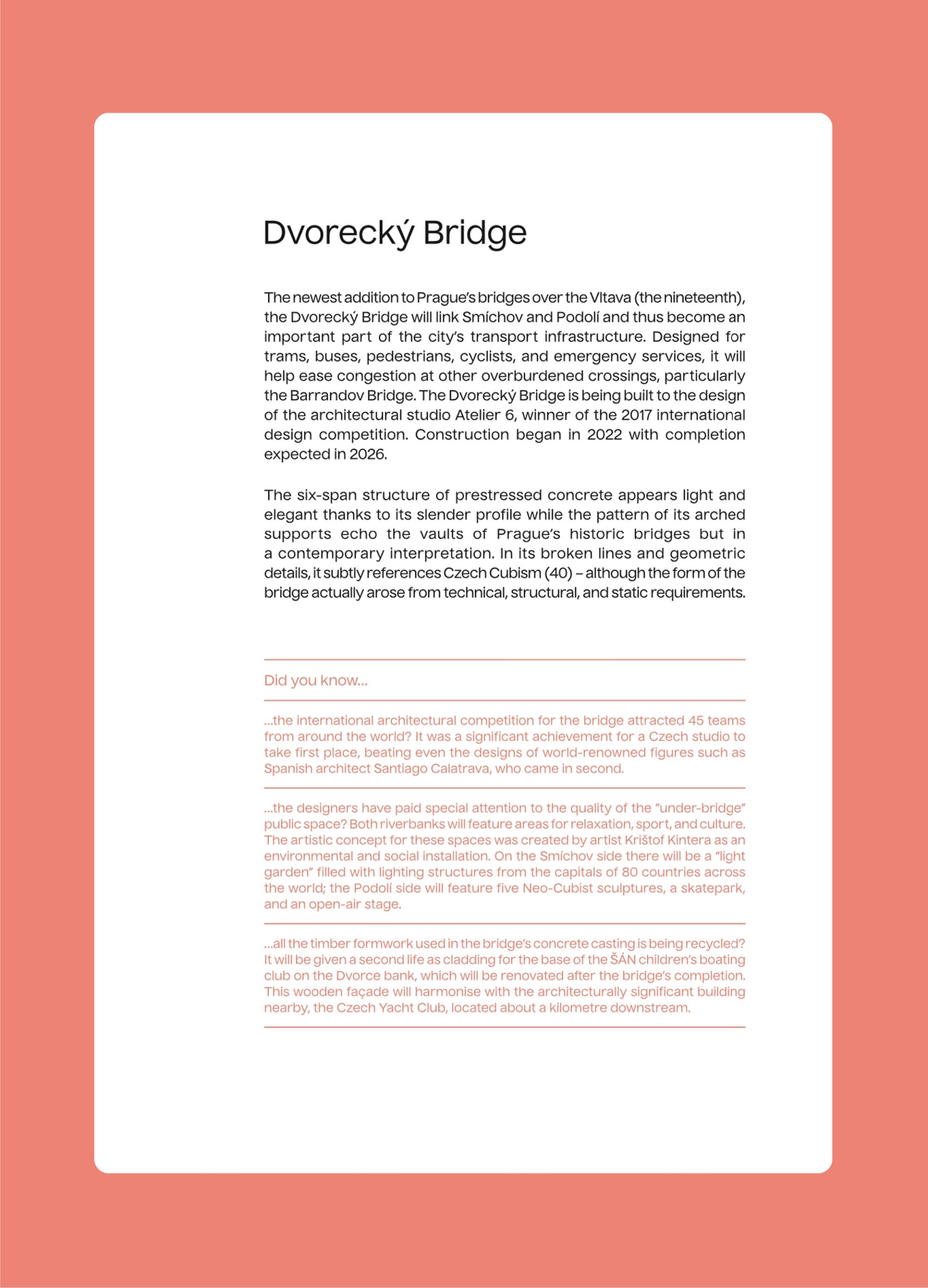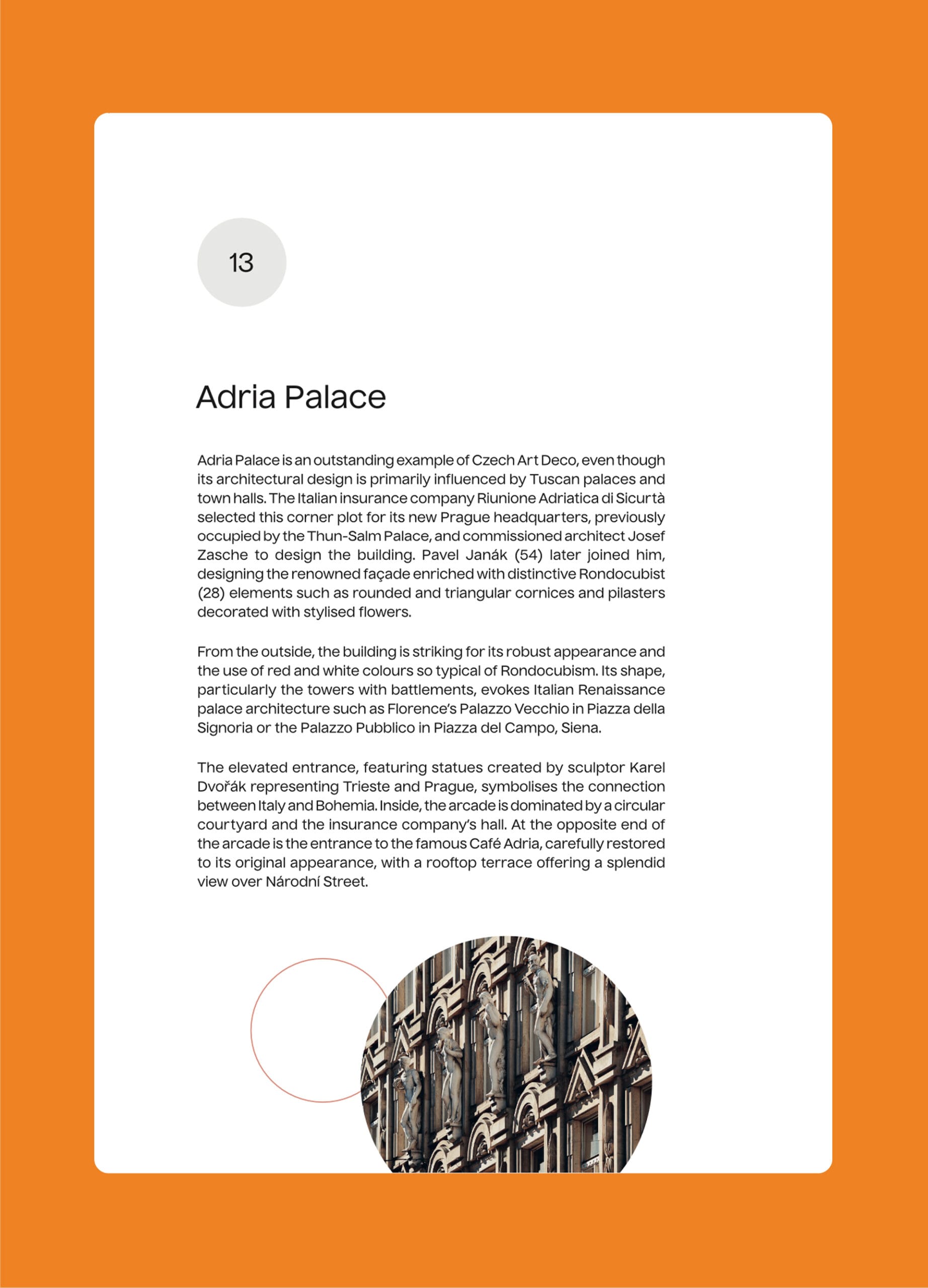“We set out to find the very best of Prague’s architecture — a cross-section of styles from the 20th and 21st centuries. Alongside the buildings and their stories, we’ve added cultural and historical context to help visitors and expats understand the complex background in which these iconic structures were created.”